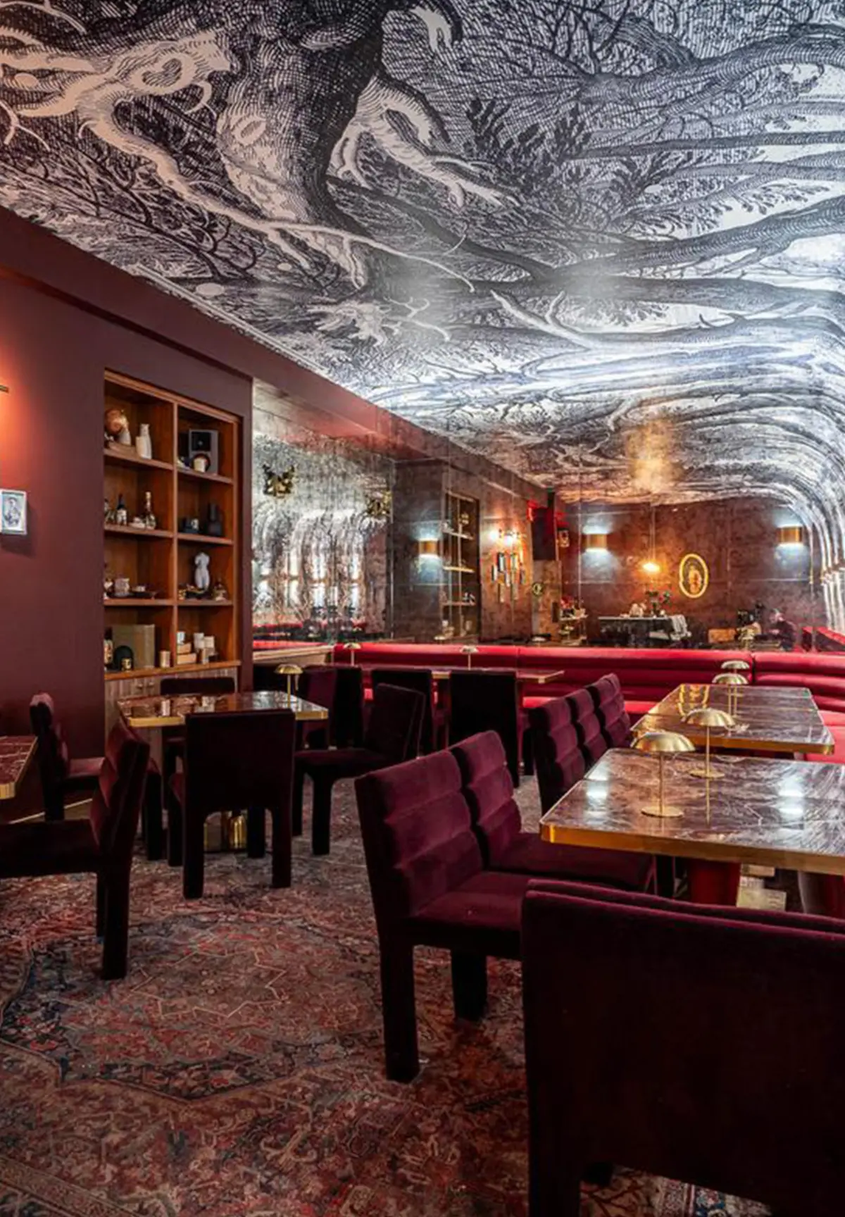 Every detail of Mileta’s design contributes to its rich, layered aesthetic. A sophisticated mix of upholstery, patterned fabrics, wood paneling, brass accents, wallpapers, curated artwork, greenery, and atmospheric lighting creates a welcoming environment that feels both modern and timeless.
